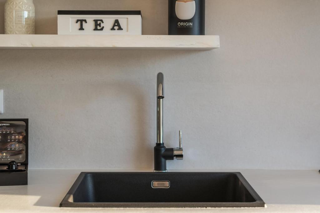 ηλεκτρική κουζίνα, ψυγείο και φρυγανιέρα. Διαθέτει επίσης κλιματισμό, έξυπνη τηλεόραση επίπεδης οθόνης και